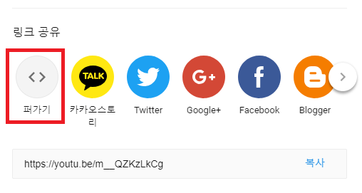 공유 버튼을 클릭하면 아래처럼 링크공유 창을 볼 수 있습니다. 여기서 퍼가기 버튼을 클릭해주세요.