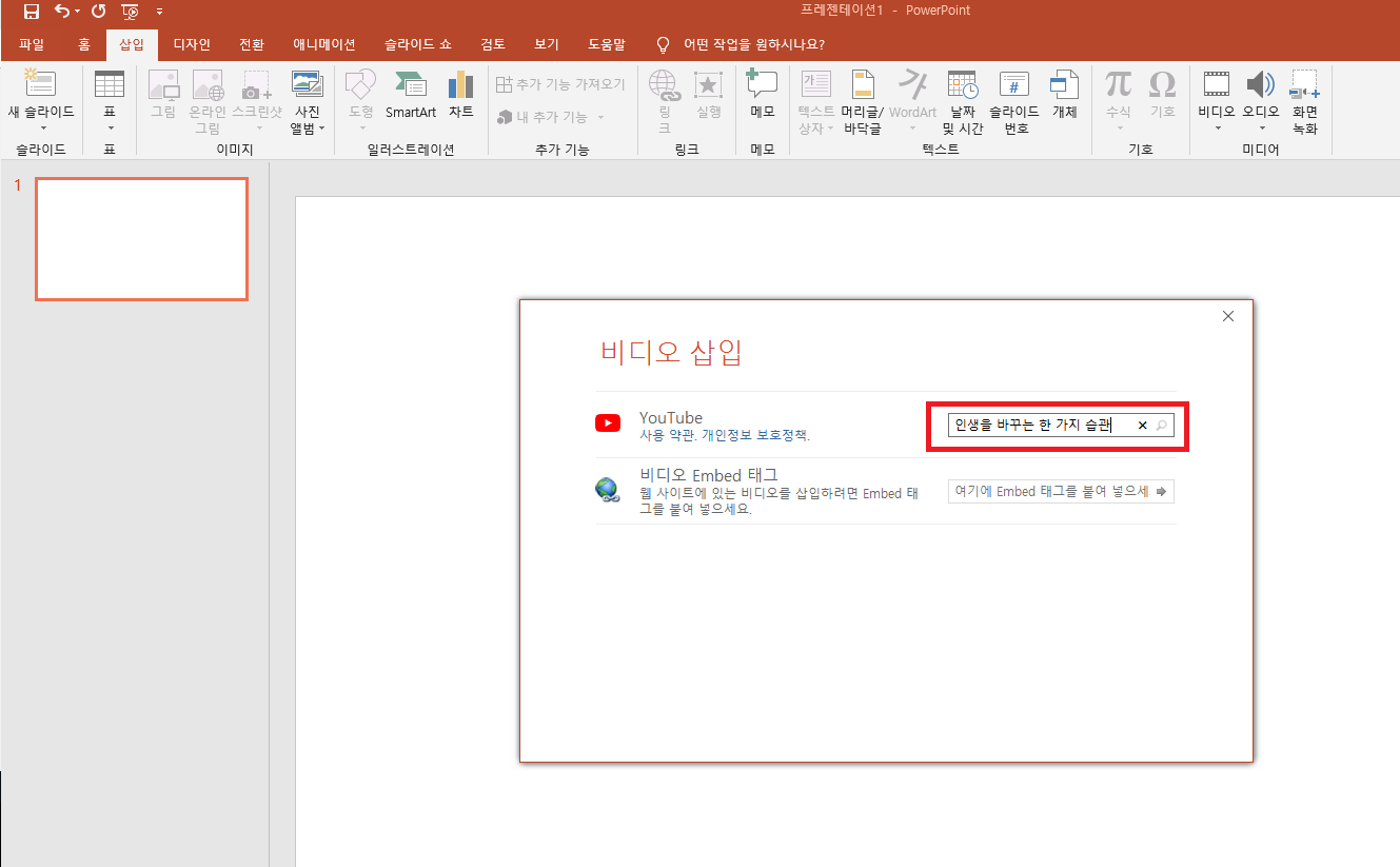 파워포인트 유튜브 동영상 넣는 쉬운 방법