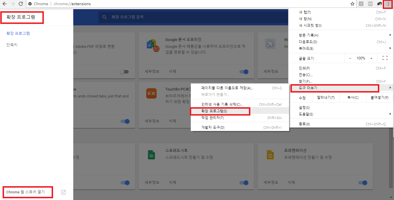 먼저 크롬 웹스토어에 들어가서 SimpleUndoClose를 검색합니다. 아래 사진과 같이 도구더보기-확장프로그램-Chrome WebStore 열기를 클릭하셔도 되고 바로가기를 클릭해서 바로 크롬 웹스토어로 들어가실 수 있습니다.