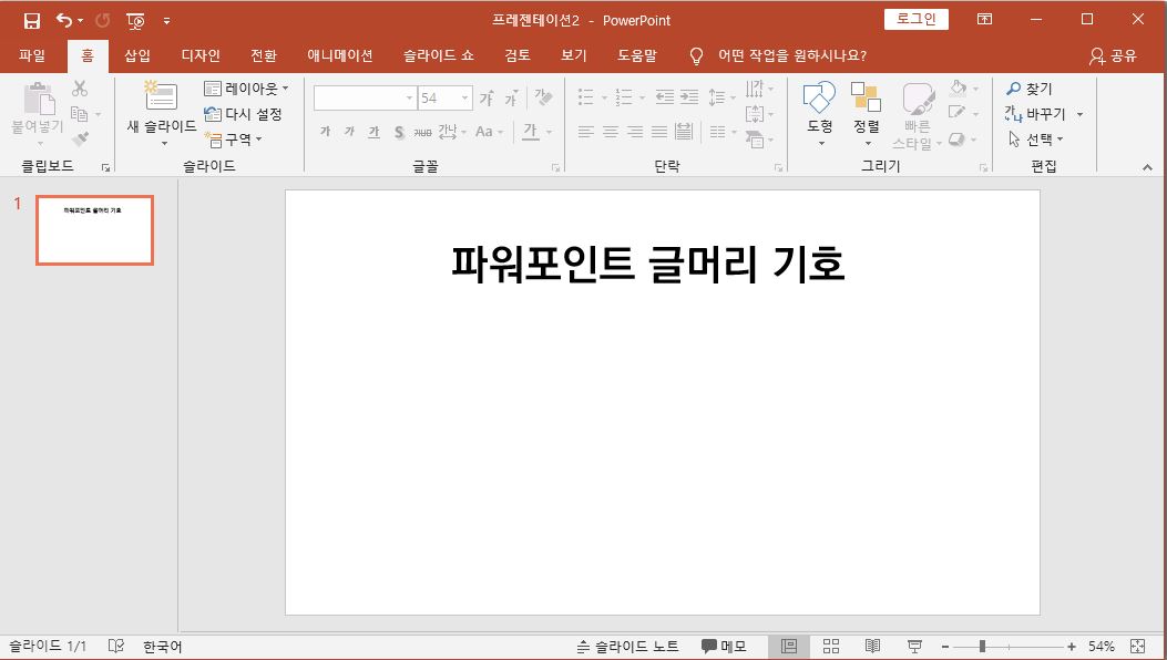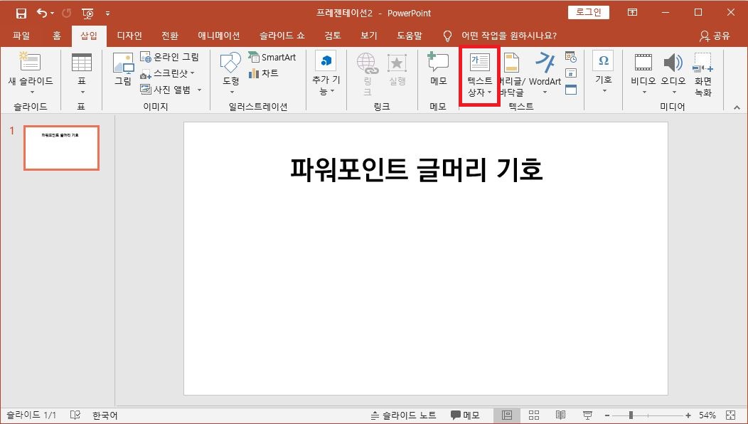 파워포인트를 먼저 열어주세요. 글머리 기호를 넣기 위해서는 먼저 텍스트 상자를 삽입해야 합니다.
