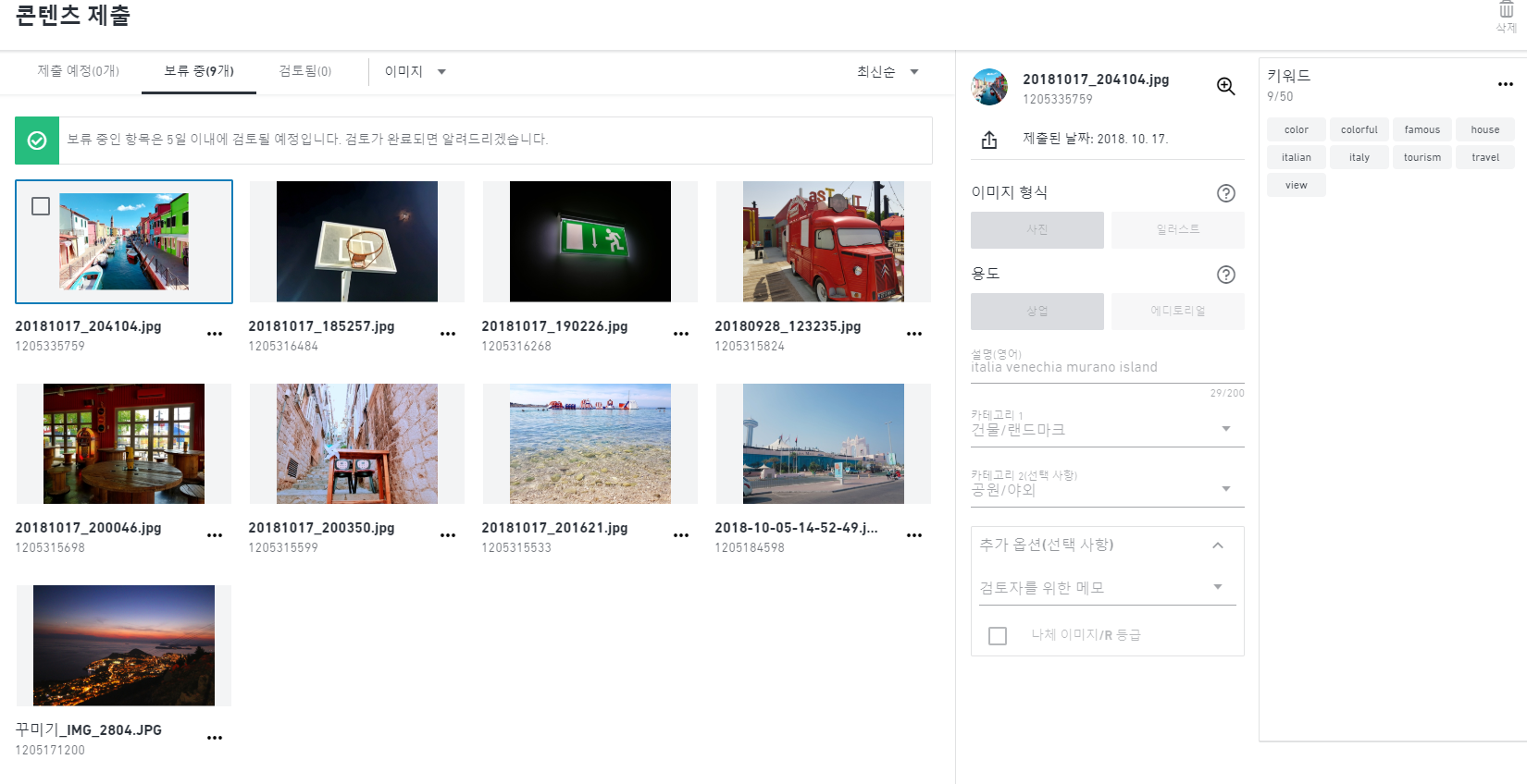 첫 번째 제출이 완료 되었네요!! 사진을 올린 후 5일 이내 검토가 된다고합니다. 핸드폰에 있는 사진 중 마음에 드는 사진을 좀 더 올려 보았어요.