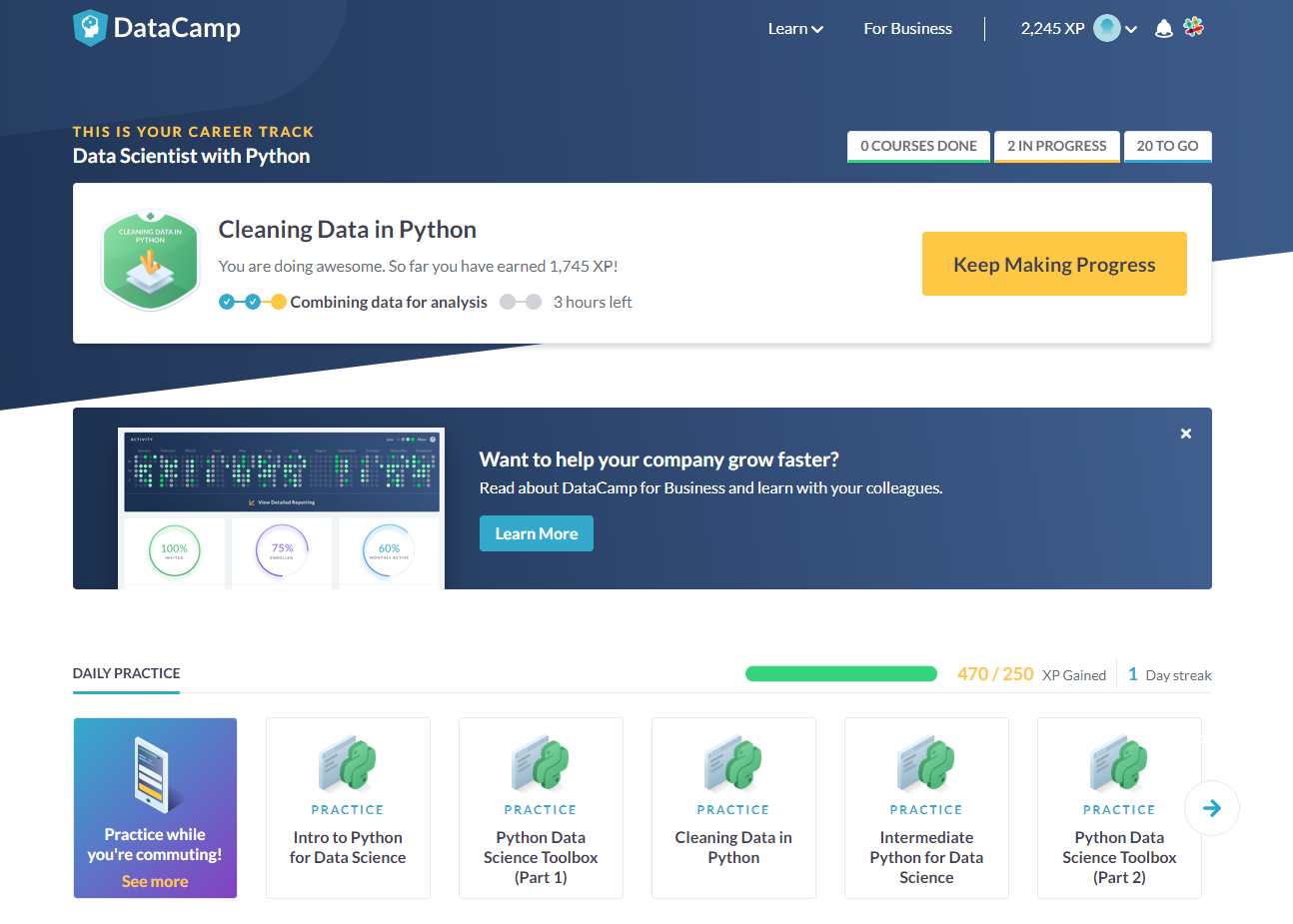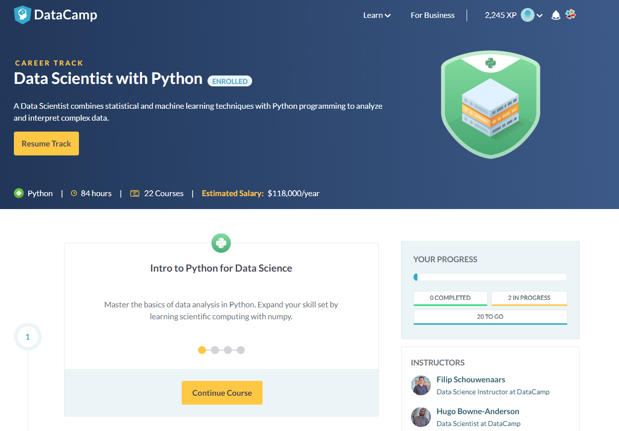 제가 지금 진행하고 있는 과정은 Data Scientist with Python입니다.