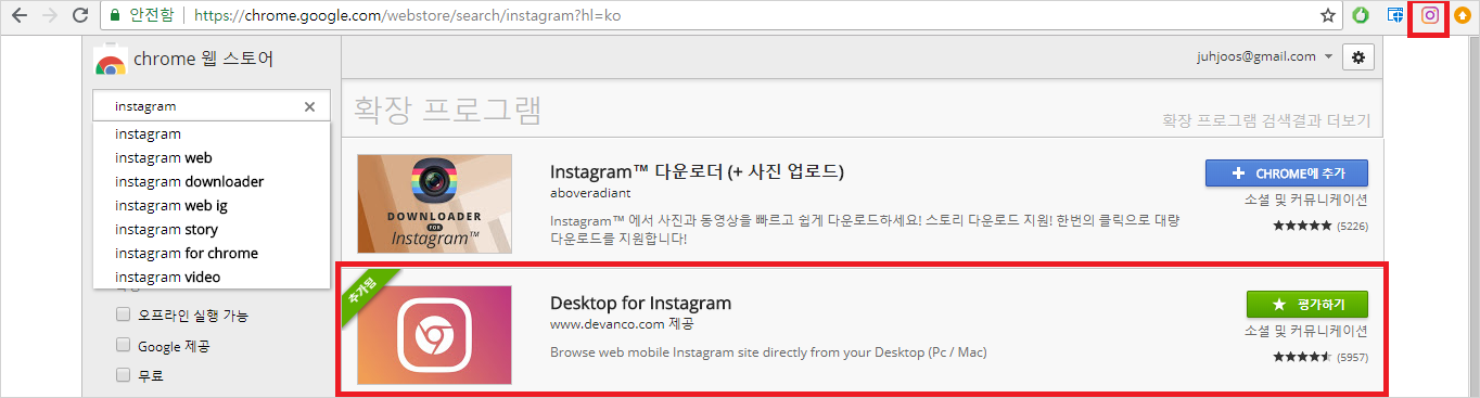 인스타그램 PC버젼, 크롬 확장 프로그램