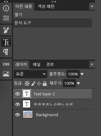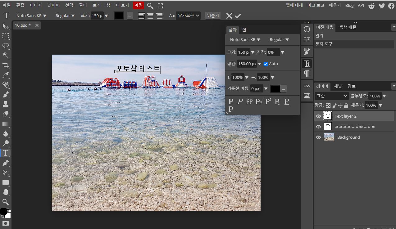 그 다음 이미지 위에 아래 처럼 텍스트를 입력도 쉽게 할 수 있어요. 사실상 기존 포토샵에 있는 모든 기능이 다 있다고 보시면 되요.