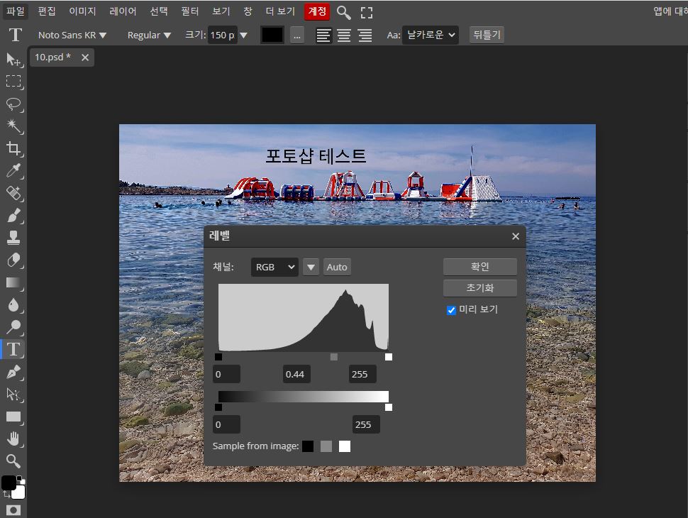 이미지 레벨 조정 등 이미지 화질 조정하는 기능도 동일하게 들어가 있답니다. 이 정도면 크게 포토샵 없이도 편하게 쓰실 수 있을거 같아요.