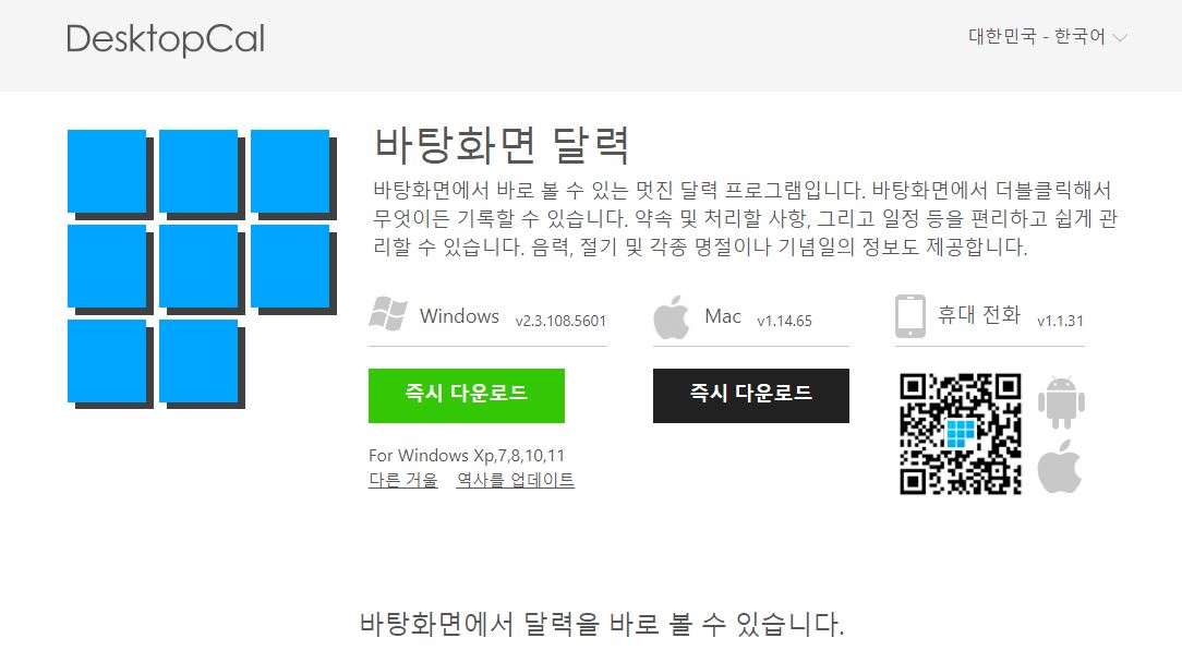 먼저 DesktopCal 홈페이지(http://www.desktopcal.com/)에 접속해서 윈도우용 프로그램을 다운로드 받아주세요.