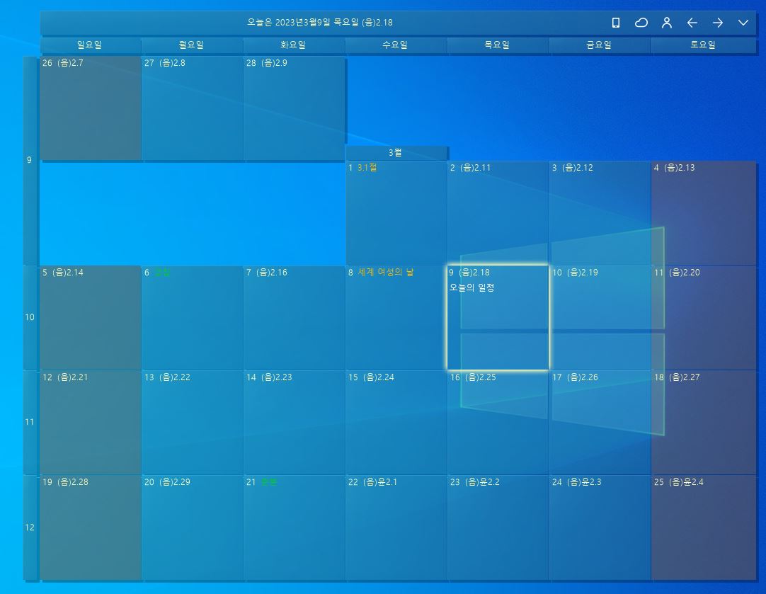 설치가 다 된 후 바탕화면을 보면 아래처럼 바탕화면 달력이 정상적으로 설치된 것을 볼 수 있어요.