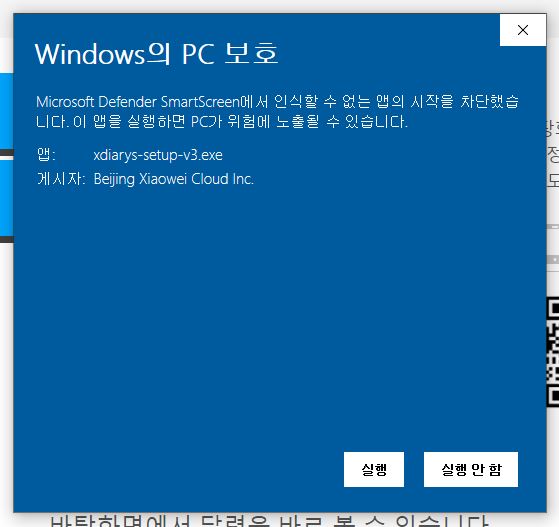 아래와 같은 메시지가 나올 수도 있는데 실행버튼을 클릭해주시면 바로 설치가 시작됩니다.