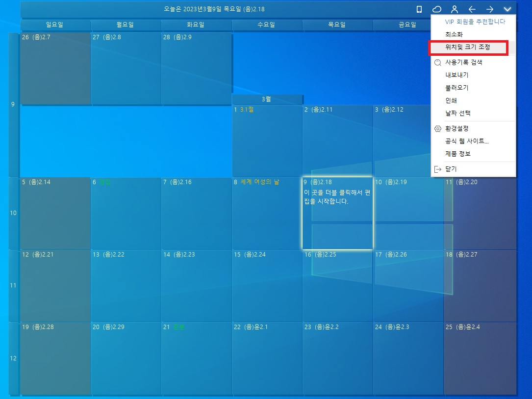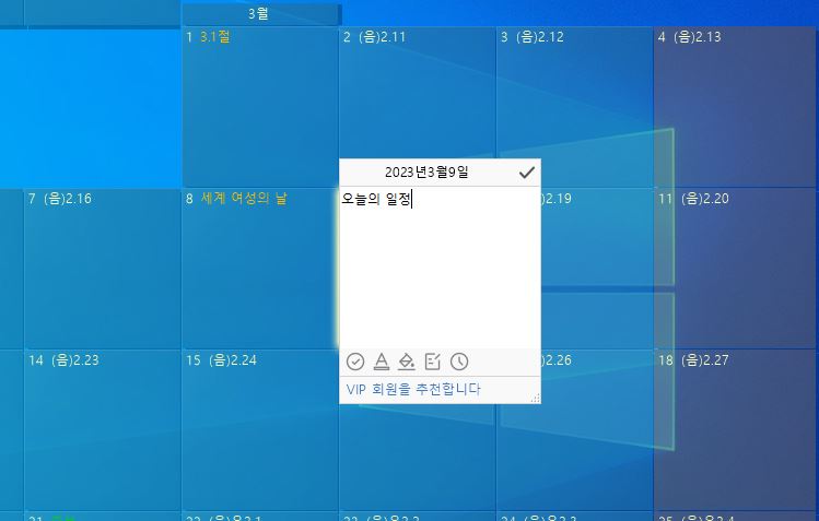 필요한 일정을 정말 쉽고 간편하게 관리할 수 있는 바탕화면 달력 프로그램이에요.