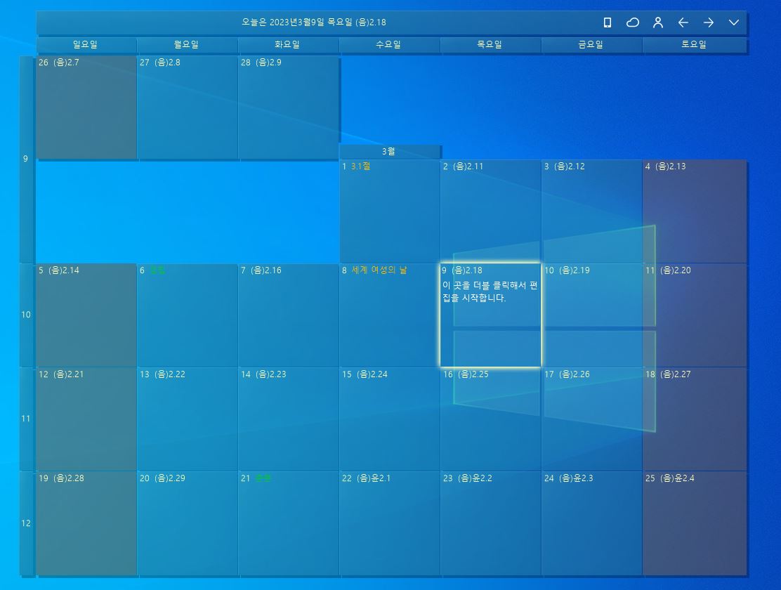윈도우 바탕화면 달력 사용