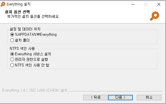Everything 프로그램을 설치 진행하면 설치 옵션들이 있는데 본인에게 맞는 옵션을 선택해주면 되요.