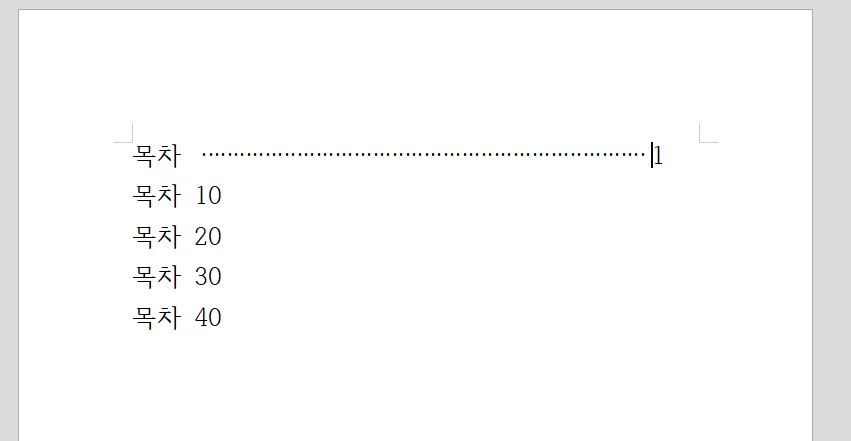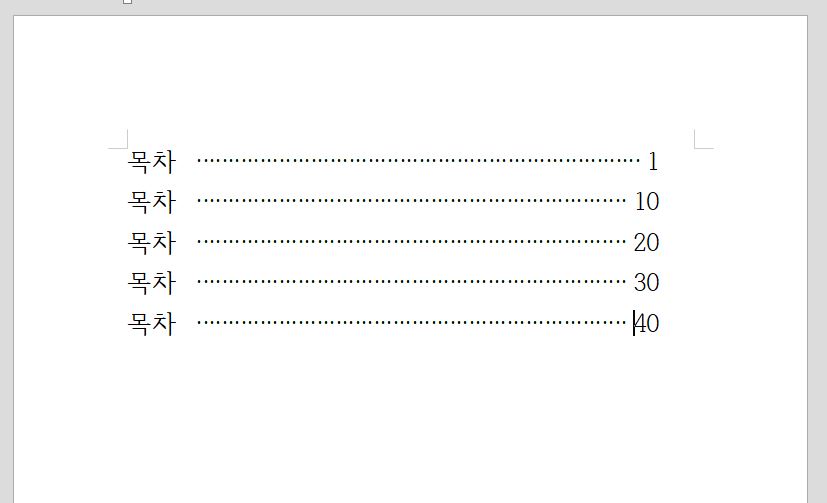 그리고 페이지 제목과 페이지 수에 커서를 두고 키보드에서 탭을 클릭해주시면 아래 처럼 이쁜 모양의 목차가 되요.