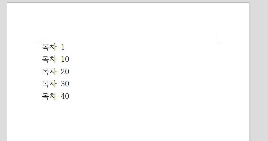 나머지 목차도 다 동일하게 해주시면 아래처럼 이쁜 모양의 목차가 만들어 진 것을 볼 수 있습니다.
