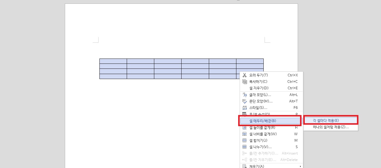 한글 표 테두리 설정