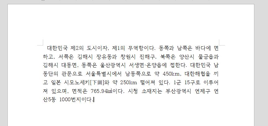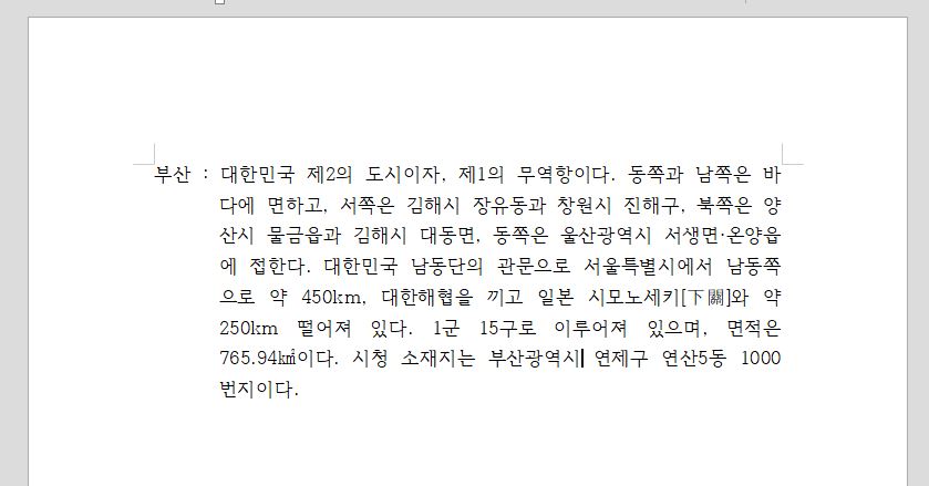 문장이 부산에 대한 것이니까 부산을 쓰고나서 세부 내용을 : 뒤로 맞추면 문장이 더 이뻐진답니다. 마찬가지고 문단 모양에 들어가주세요.