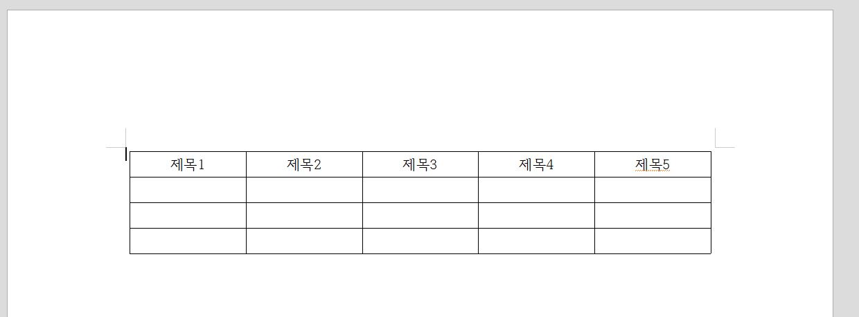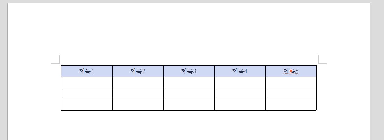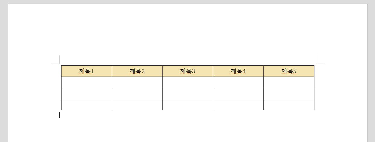 아래 이미지를 보면 표가 만들어 진 것을 볼 수 있어요. 제목 부분에 색채우기를 통해 표를 이쁘게 만들어 보도록 할게요.