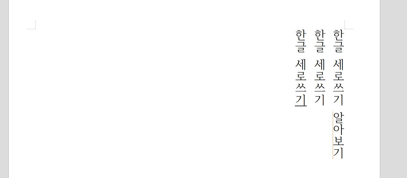 아래처럼 한글에서 세로쓰기가 써지는 것을 볼 수 있어요. 정말 간단한 방법이지만 모르면 곤란할 수 있으니 알아두면 좋아요.