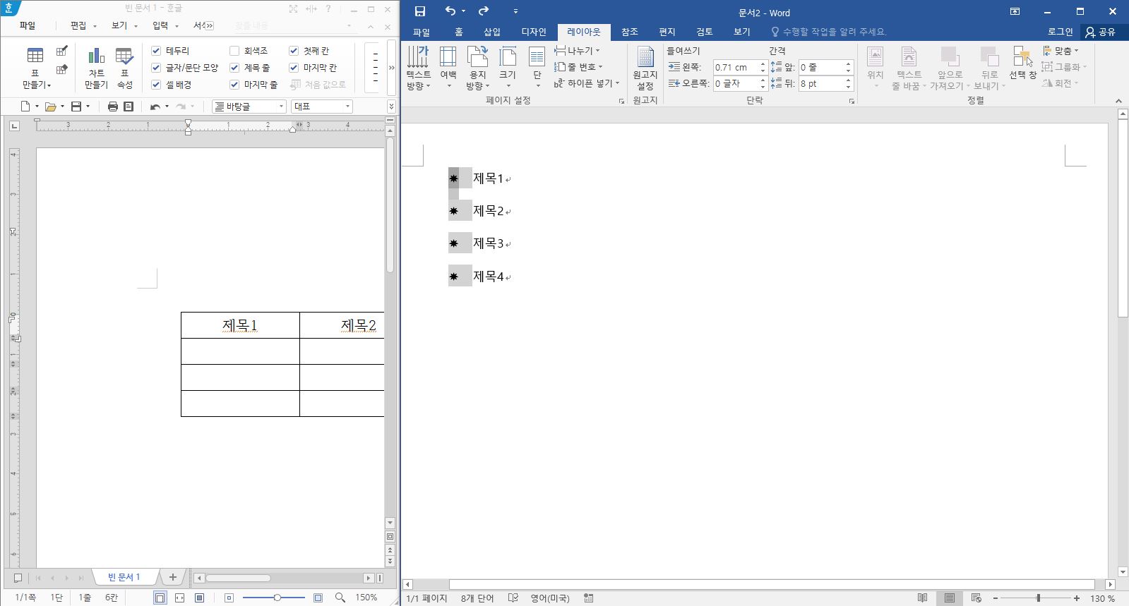 그 다음 화면 분할하는 것은 정말 쉬워요. 메인으로 사용할 창을 선택해주세요. 그 다음 키보드에서 윈도우키 또는 Fn + 왼쪽 화살표를 선택하면 오른쪽에 놓을 창을 선택할 수 있어요. 왼쪽에는 한글 창을 그리고 오른쪽에는 워드 창을 띄워볼게요.