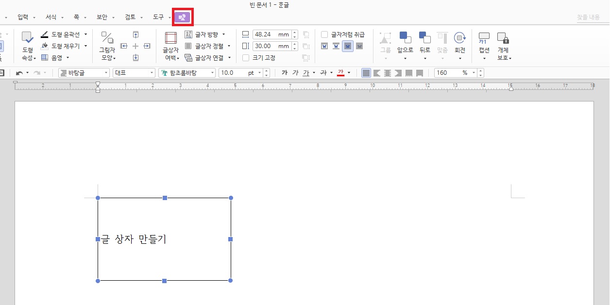 간단한 모양의 글 상자가 아래 만들어 진 것을 볼 수 있어요. 이제 글 상자를 어떻게 꾸미는지 한번 알아볼게요.