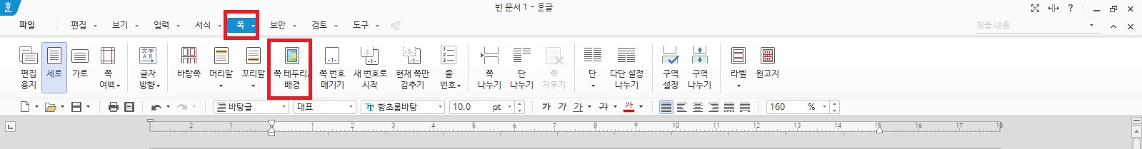 상단 메뉴에서 쪽-쪽 테두리/배경을 클릭해주세요.