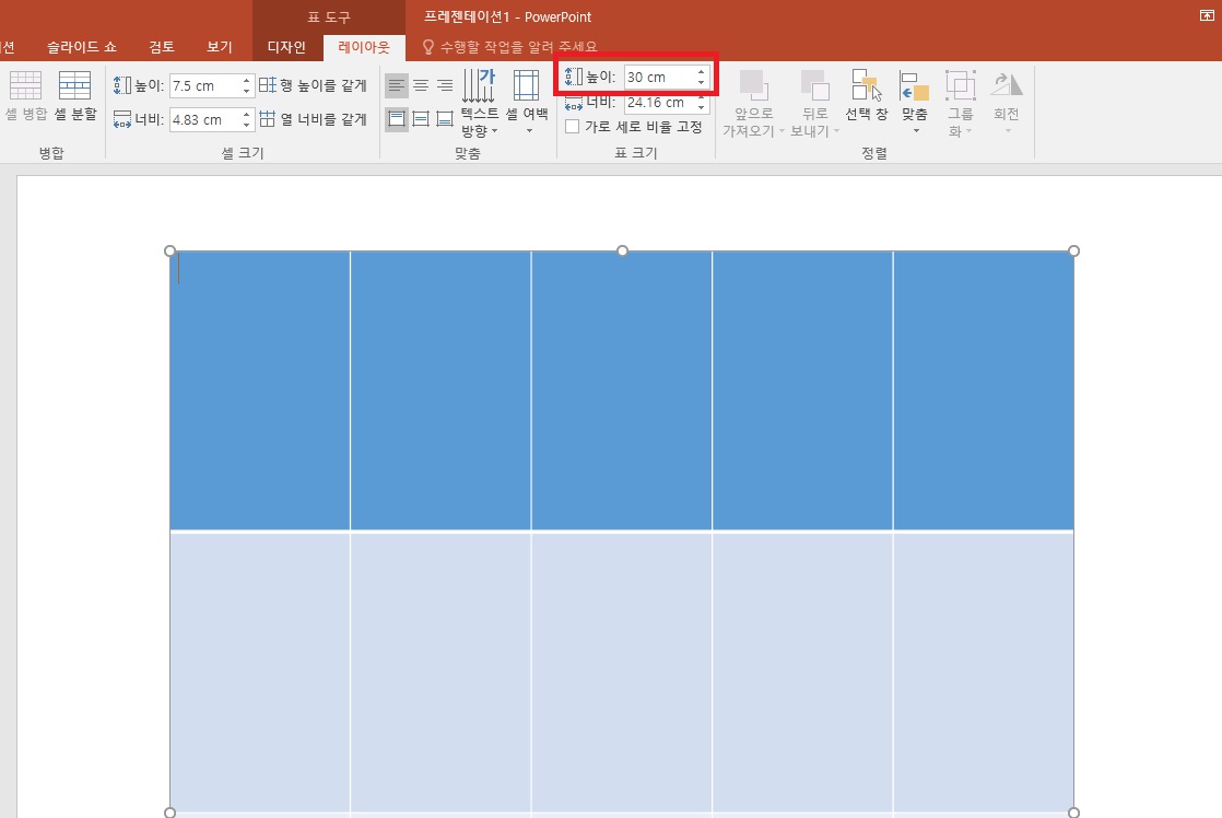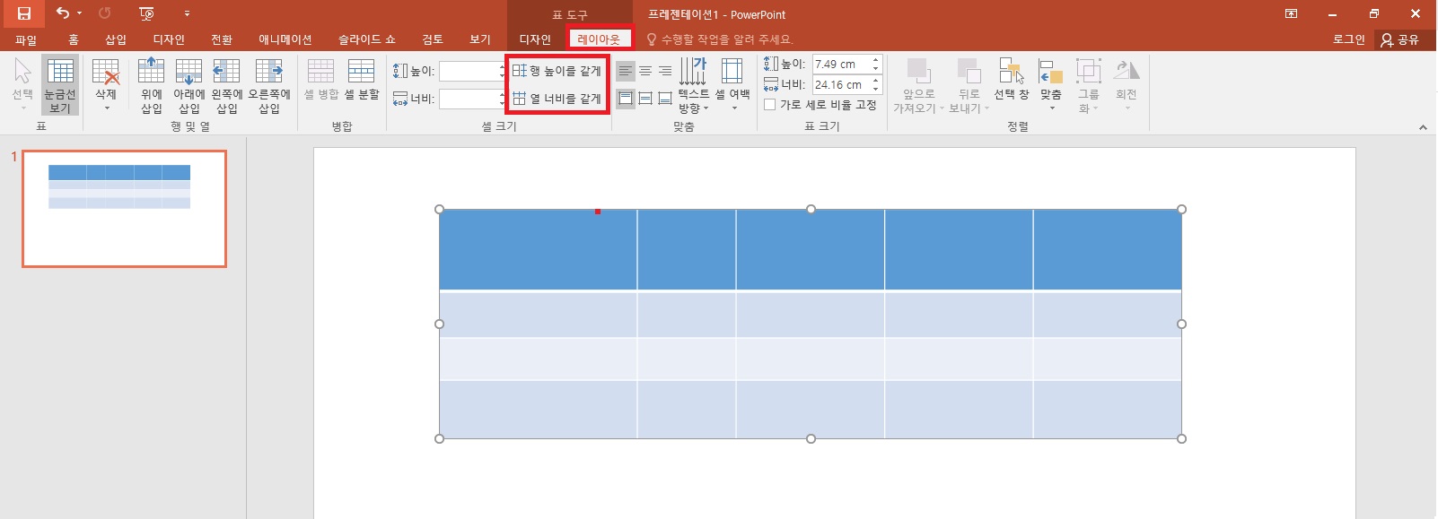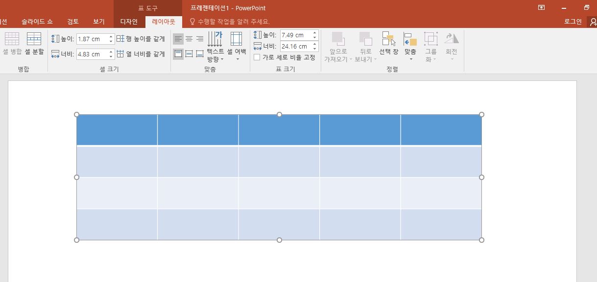 파워포인트 표 간격 일정하게 만들기