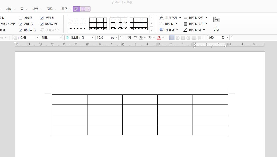 한글 표 대각선 넣는 방법