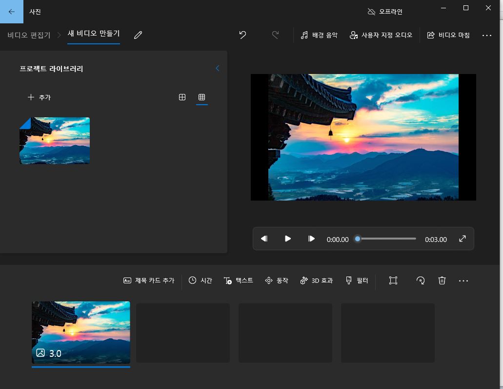 윈도우 10 무비메이커 기능 사용