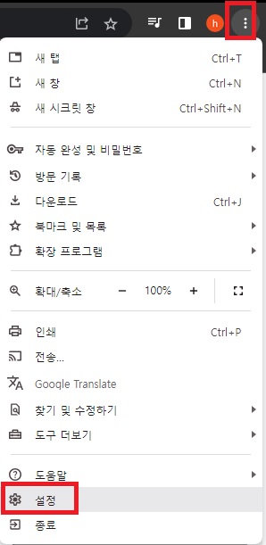 크롬에서 오른쪽 상단 ... 버튼을 클릭한 다음에 설정을 클릭해주세요. 설정에서는 크롬브라우저와 관련된 다양한 설정을 할 수 있어요.