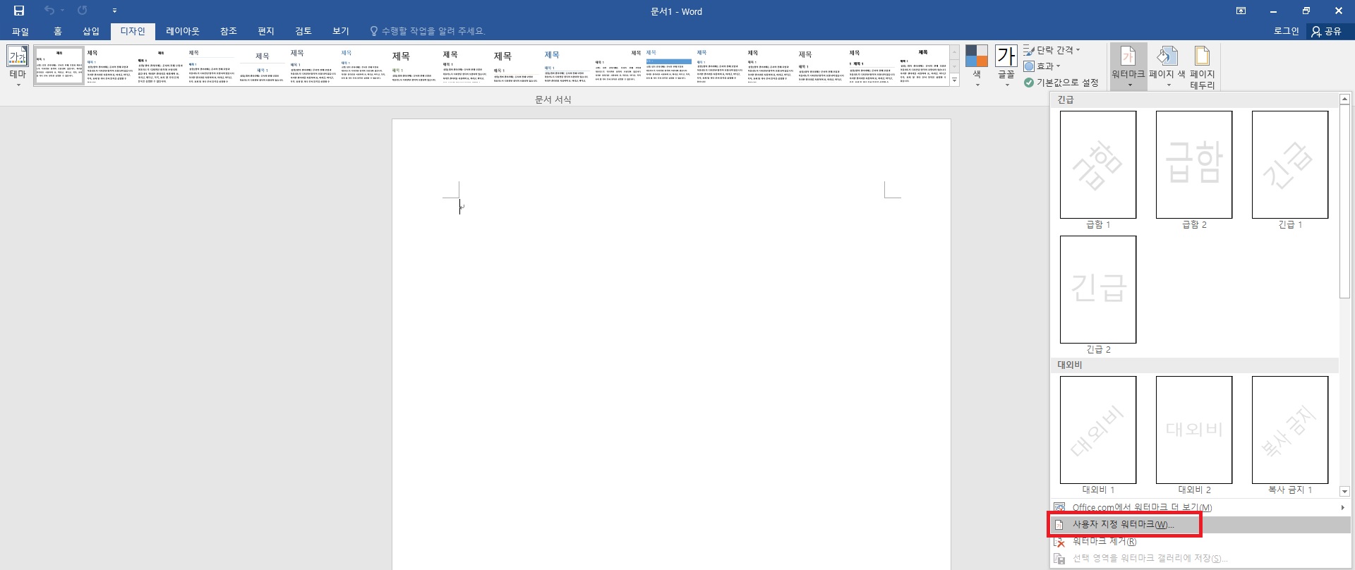 워드 워터마크 넣는 방법