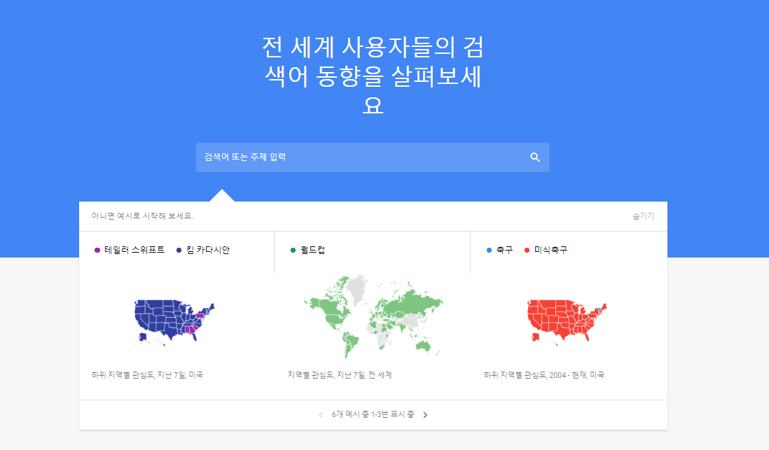 구글 트렌드(바로가기)는 전 세계 구글을 통해 검색하는 검색량을 기반으로 한 트렌드 예측 도구 입니다.