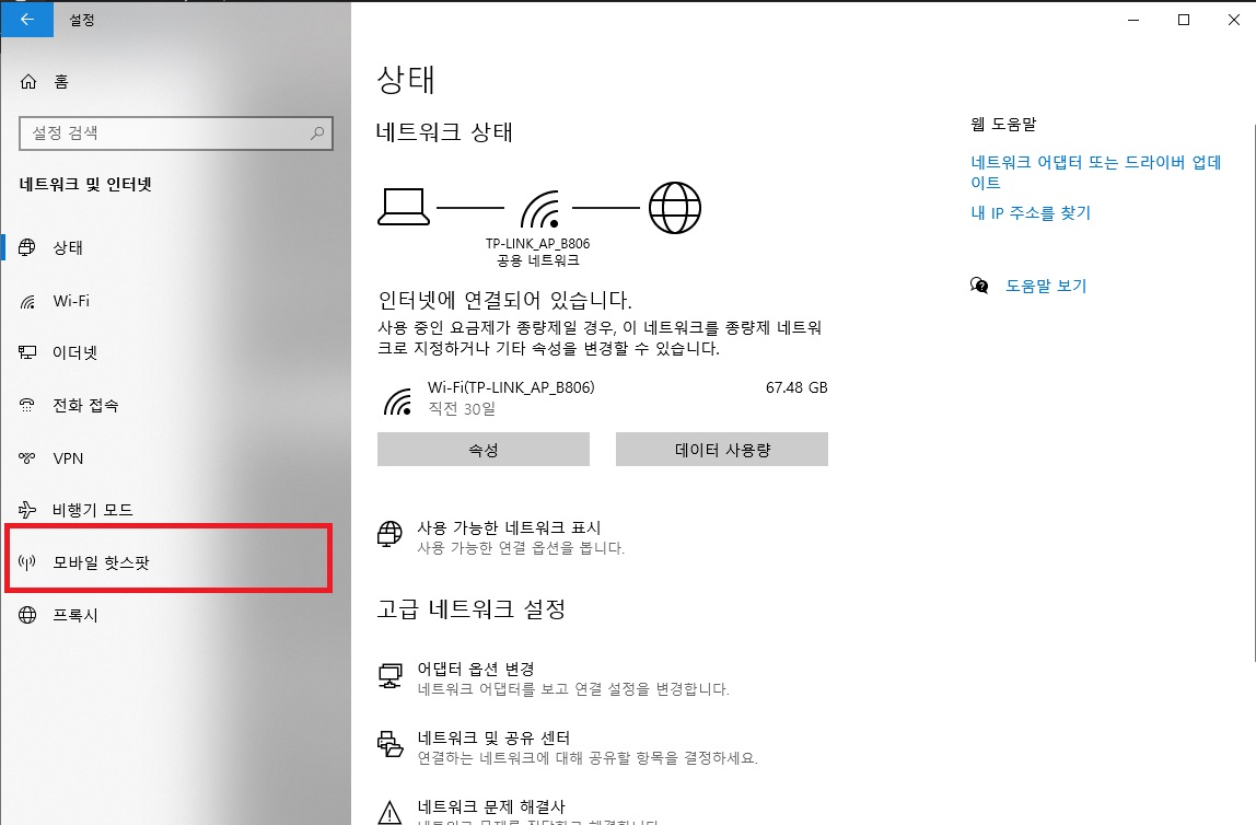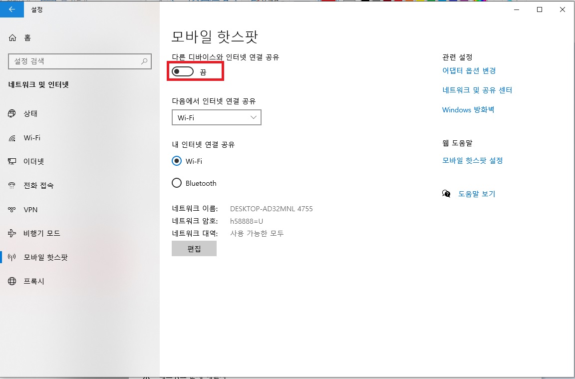 윈도우 모바일 핫스팟 설정 방법 알아보기