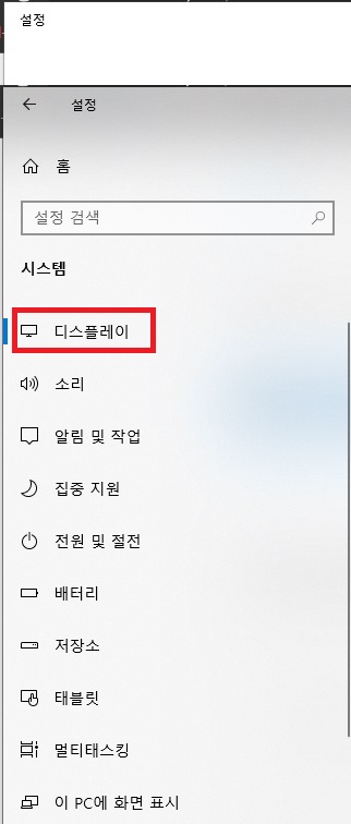 시스템 화면에서 왼쪽 다양한 메뉴 중 디스플레이를 클릭해주세요. 디스플레이 설정은 화면 해상도를 변경하거나 화면에 비율도 수정할 수 있어요.