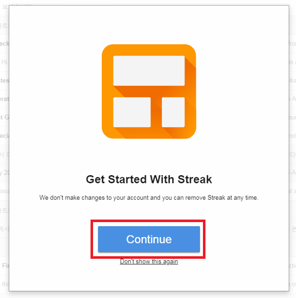 그럼 Streak CRM for Gmail 설치가 완료되었고Get Started를 눌러서 본격적으로 사용할 수 있습니다.