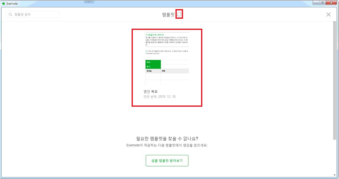 처음 열었던 템플릿 창에서 새로고침을 해주시면 연간 목표 템플릿이 저장된 것을 확인 할 수 있습니다. 그럼 연간 목표 템플릿을 클릭해주시면 노트에 템플릿이 바로 입력됩니다.