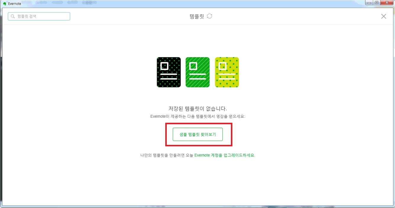 템플릿 창에서 저장해둔 템플릿 리스트를 한 눈에 볼 수 있습니다. 아직까지 저장해둔 템플릿이 없어서 아무것도 보이지 않네요. 샘플 템플릿 찾아보기를 클릭해주세요.