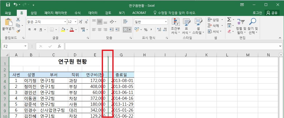 어렵지 않은 기능인데 혹시 모를경우 알아두면 좋을거 같아요. 혹시나 숨겨진 열이 있어서 못찾으면 난감할 경우가 있답니다.
