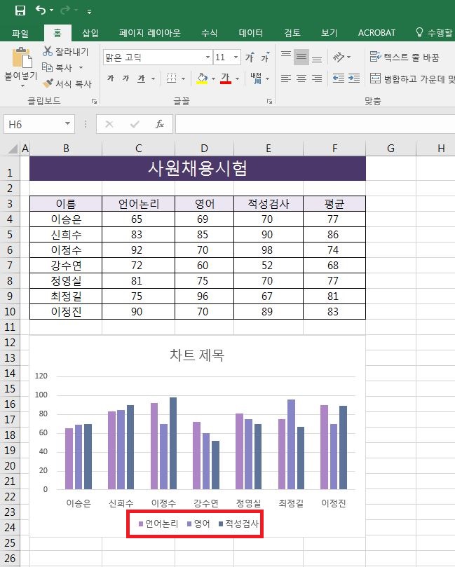 아래와 같은 차트를 볼 수 있습니다. 표와 다르게 현재 차트에서는 평균 항목이 빠져있습니다.