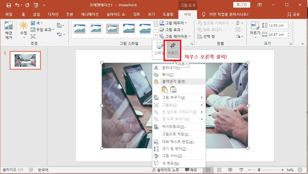 파워포인트 그림 자르기 및 스타일 변경