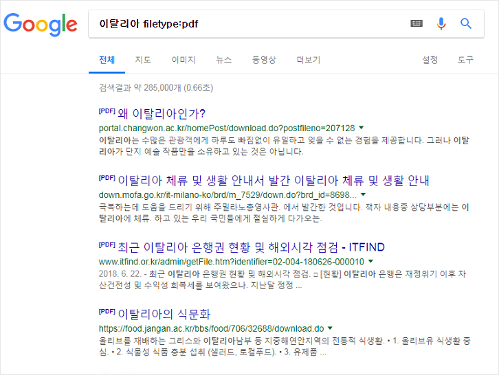 특정 확장자 파일 검색하기 : 검색어 filetype:확장자