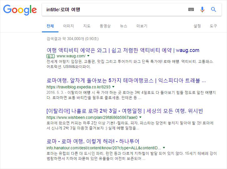 검색어를 포함한 제목 검색하기 : intitle : 검색어