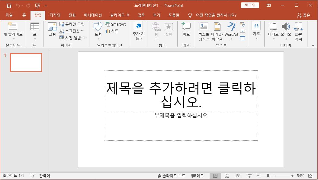 파워포인트 화면 캡쳐에 대해서 본격적으로 알아보겠습니다. 먼저 파워포인트 창을 띄워주세요.