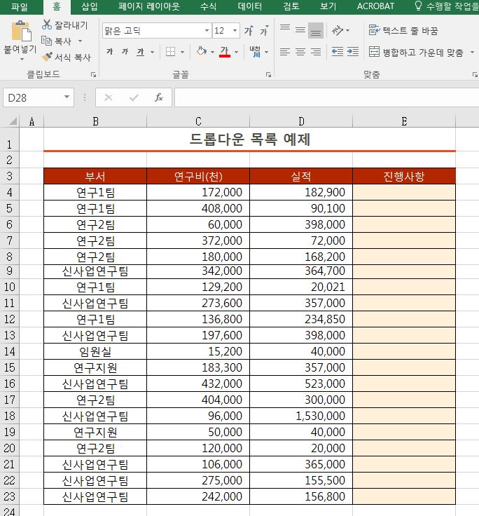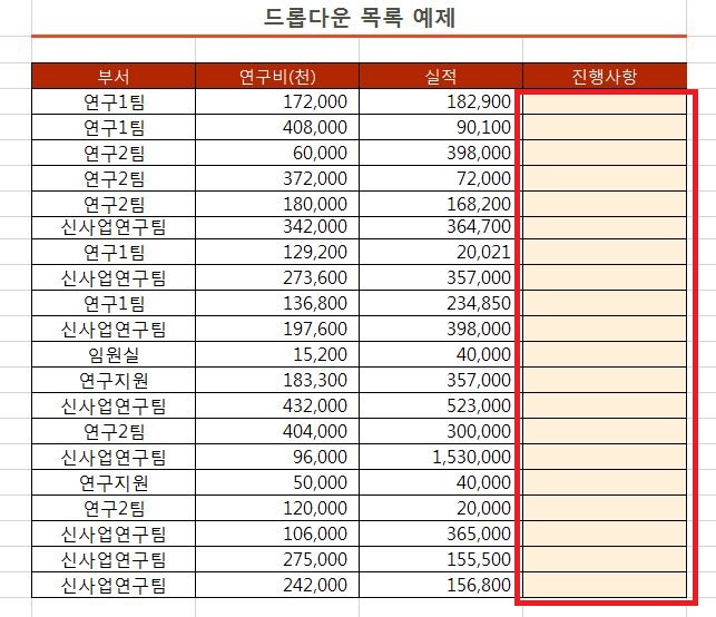 엑셀 드롭다운 목록 만드는 방법