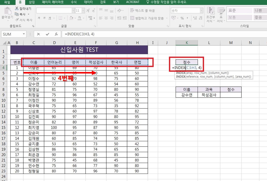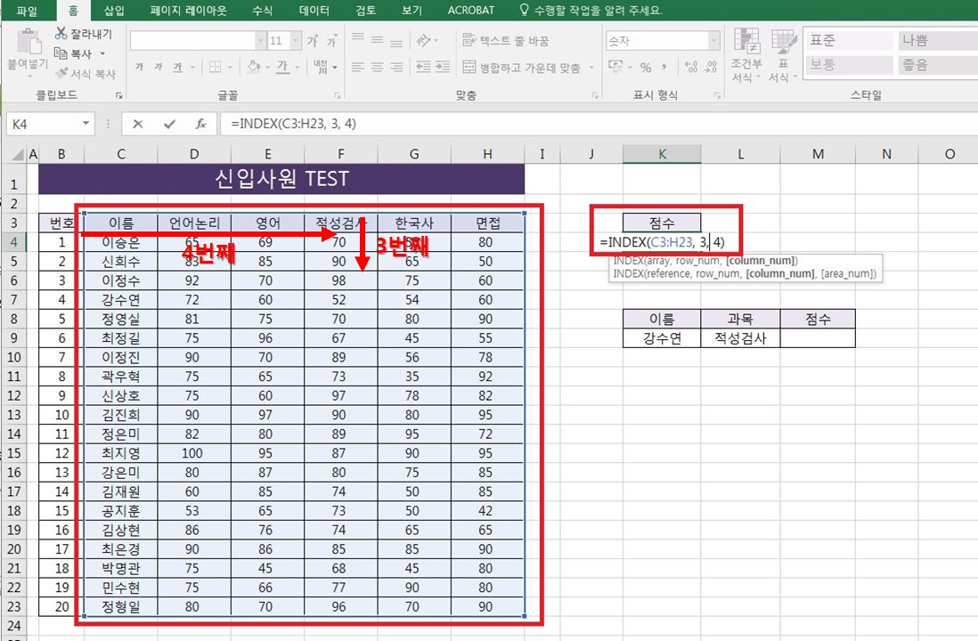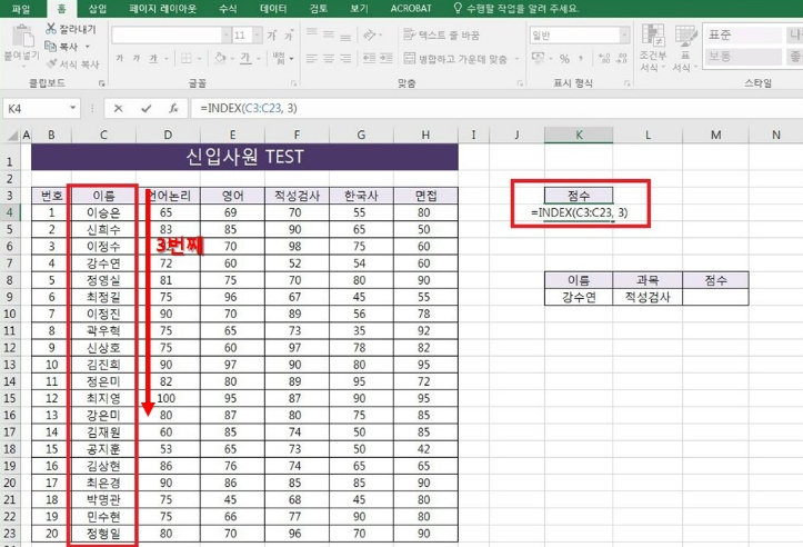 엑셀 index 함수 사용하는 간단한 방법