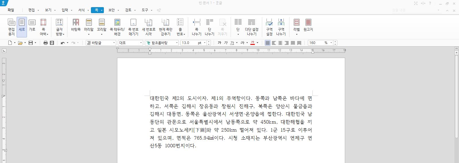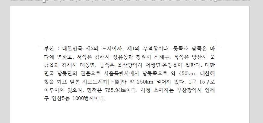 문장이 부산에 대한 것이니까 부산을 쓰고나서 세부 내용을 : 뒤로 맞추면 문장이 더 이뻐진답니다. 마찬가지고 문단 모양에 들어가주세요.
