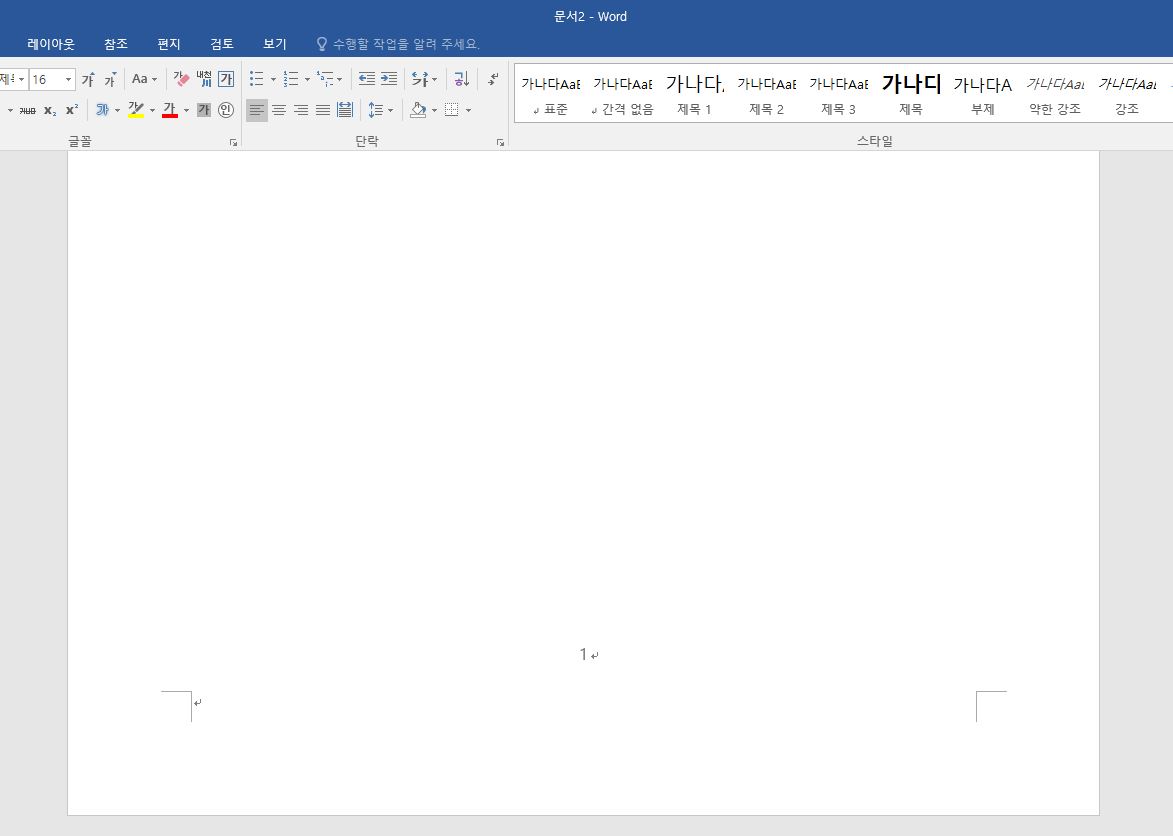 먼저 워드를 열어봅니다. 워드에는 다양한 메뉴가 있어서 처음 사용하시는 분은 페이지 번호 삽입하는 곳을 찾기가 쉽지 않아요.