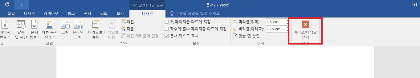 상단의 머리글/바닥글 닫기를 클릭함녀 간단하게 나갈 수 있답니다.