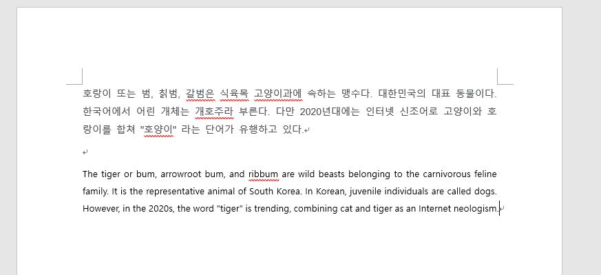 워드 문서 변역 기능