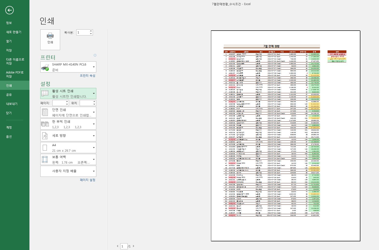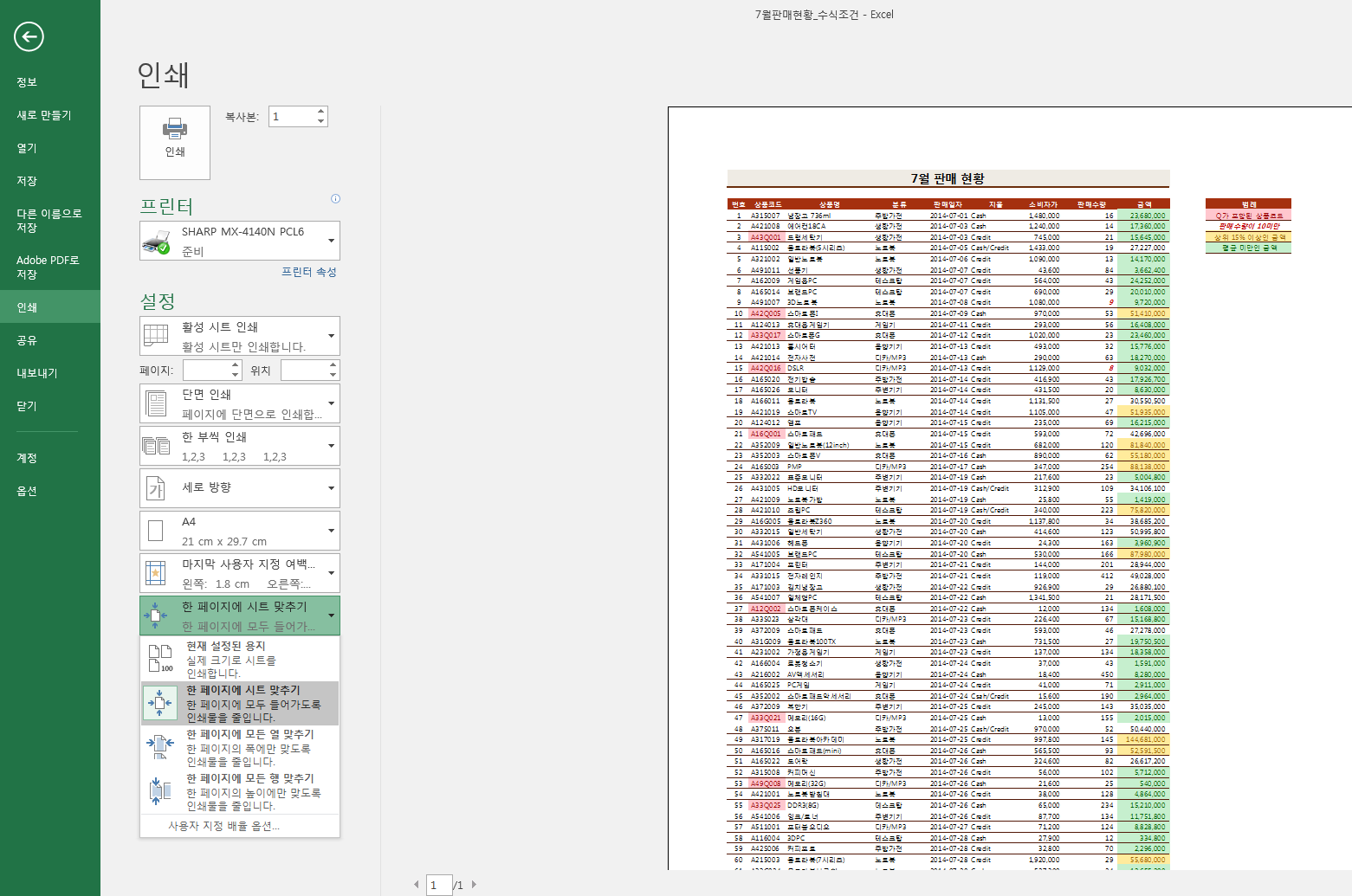 [엑셀사용 노하우]엑셀 A4 용지에 맞게 출력하는 방법