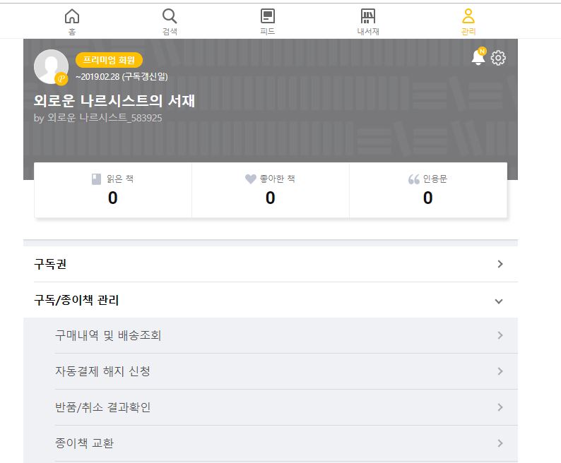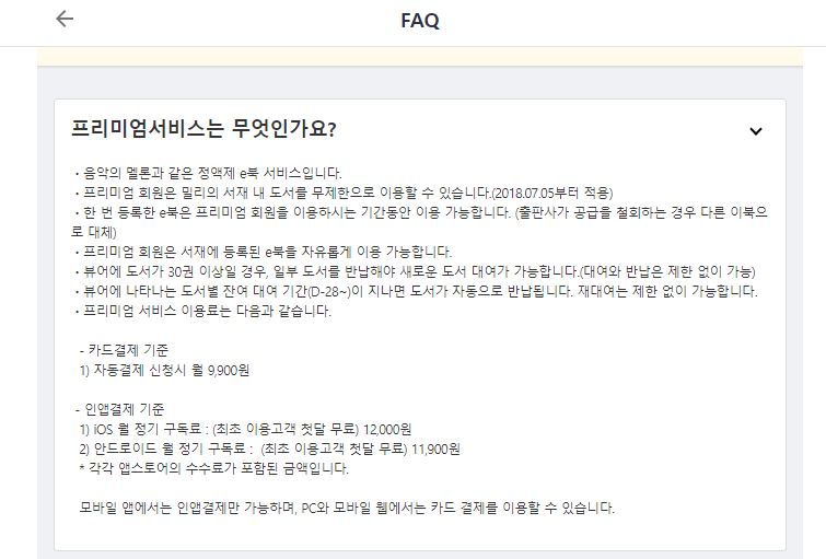 프리미엄 서비스 1달 무료 이후에는 자동결제 신청하면 월 9,900원에 이용 가능해요. 이게 가장 마음에 들더라구요. 종이 책 1권 값도 안되는 가격에 원하는 책을 무제한으로 마음껏 볼 수 있다는 것이였어요.