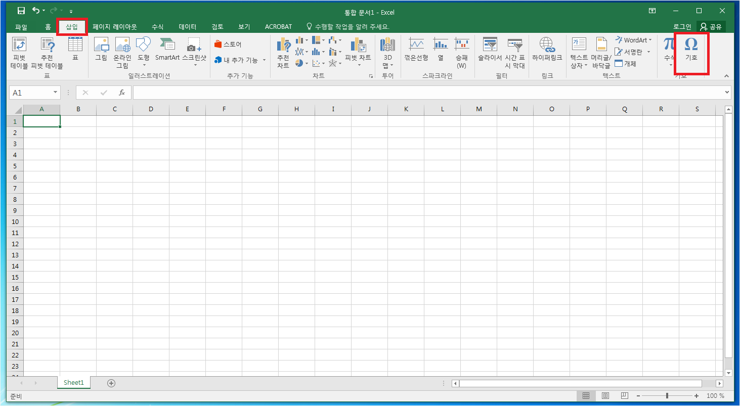 먼저 엑셀에 특수문자 넣는 방법에 대해서 알아보겠습니다. 찾는 방법은 간단합니다.엑셀의 상단에 삽입-기호를 클릭하시면 됩니다.